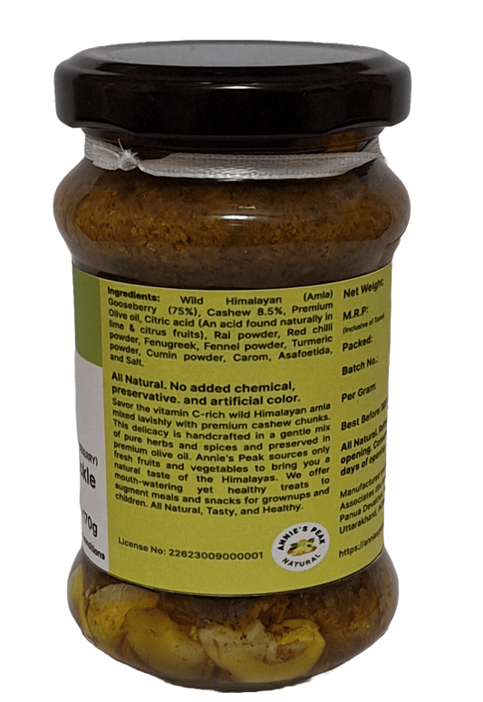 Cashew amla pickle in Mustard oil | 170 gram | Superfruit Himalayan amla with cashews is rich in antioxidants and boosts immunity and memory | All Natural | No artificial preservative or color