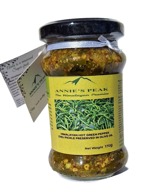 Himalayan Green Chili Pickle preserved in olive oil 170 grams | All natural | Fresh Himalayan spices | No artificial preservative and color | Antioxidants rich family immunity booster