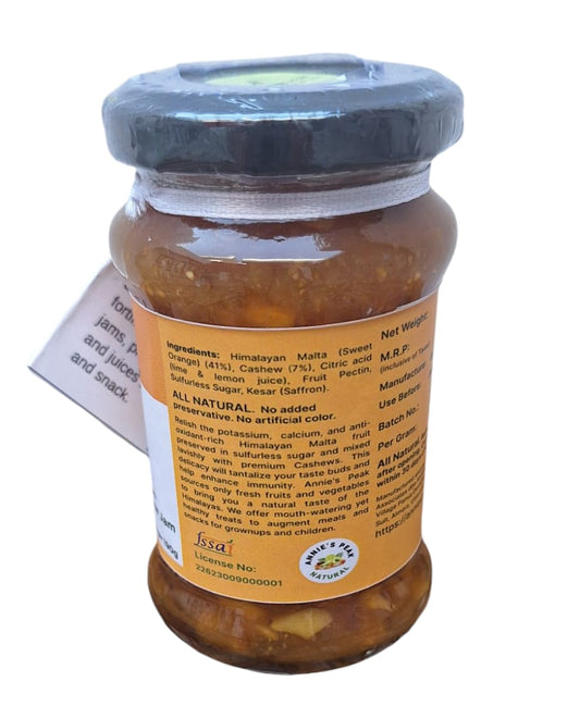 Himalayan Malta (Sweet Orange) and Cashew Jam | 190 gram | Loaded with cashews | Preserved in sulfurless sugar | No artificial preservative or color | All natural